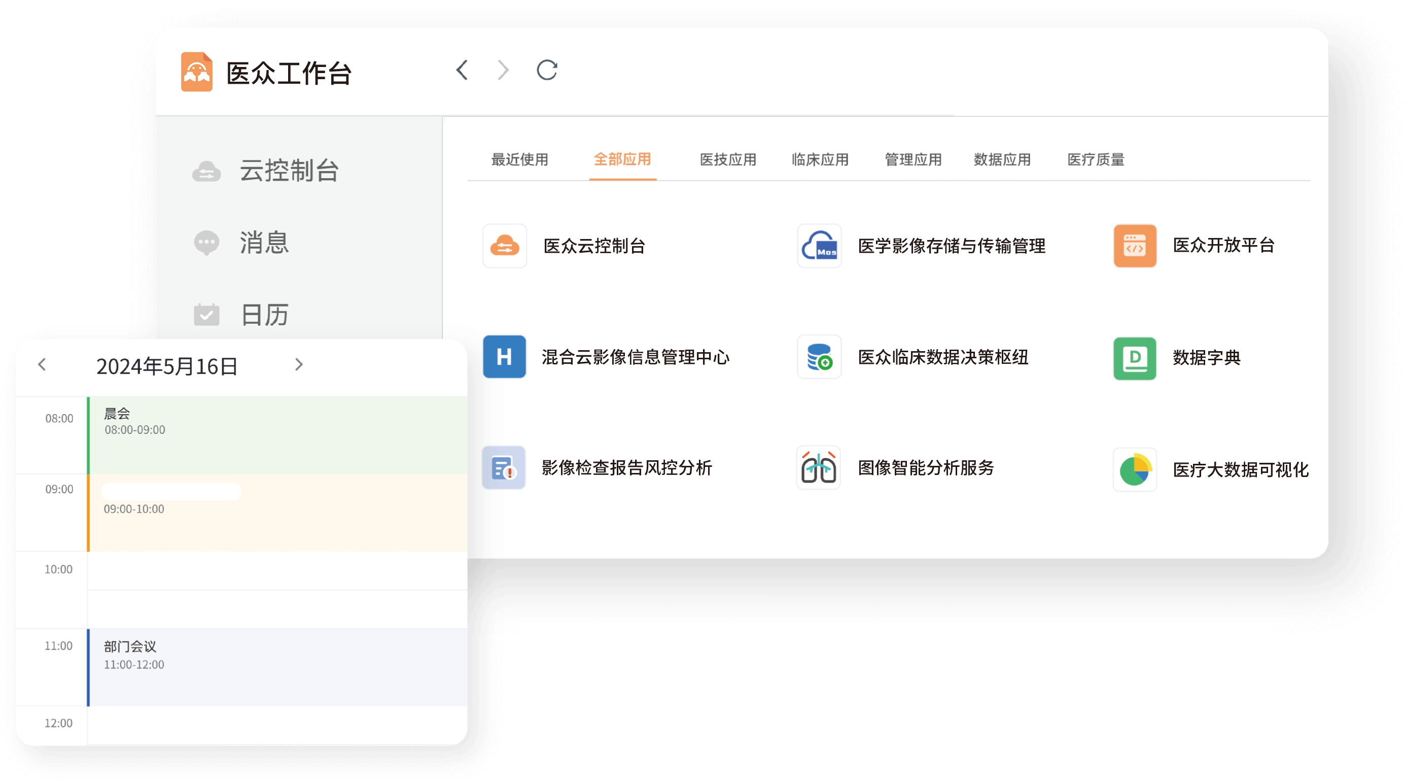 醫(yī)眾工作臺是承載醫(yī)眾全部數(shù)據(jù)能力與功能的應(yīng)用框架,采用 Docker 技術(shù)進(jìn)行分布式部署。每一位用戶都擁有完整且獨(dú)立的云端節(jié)點(diǎn)。
